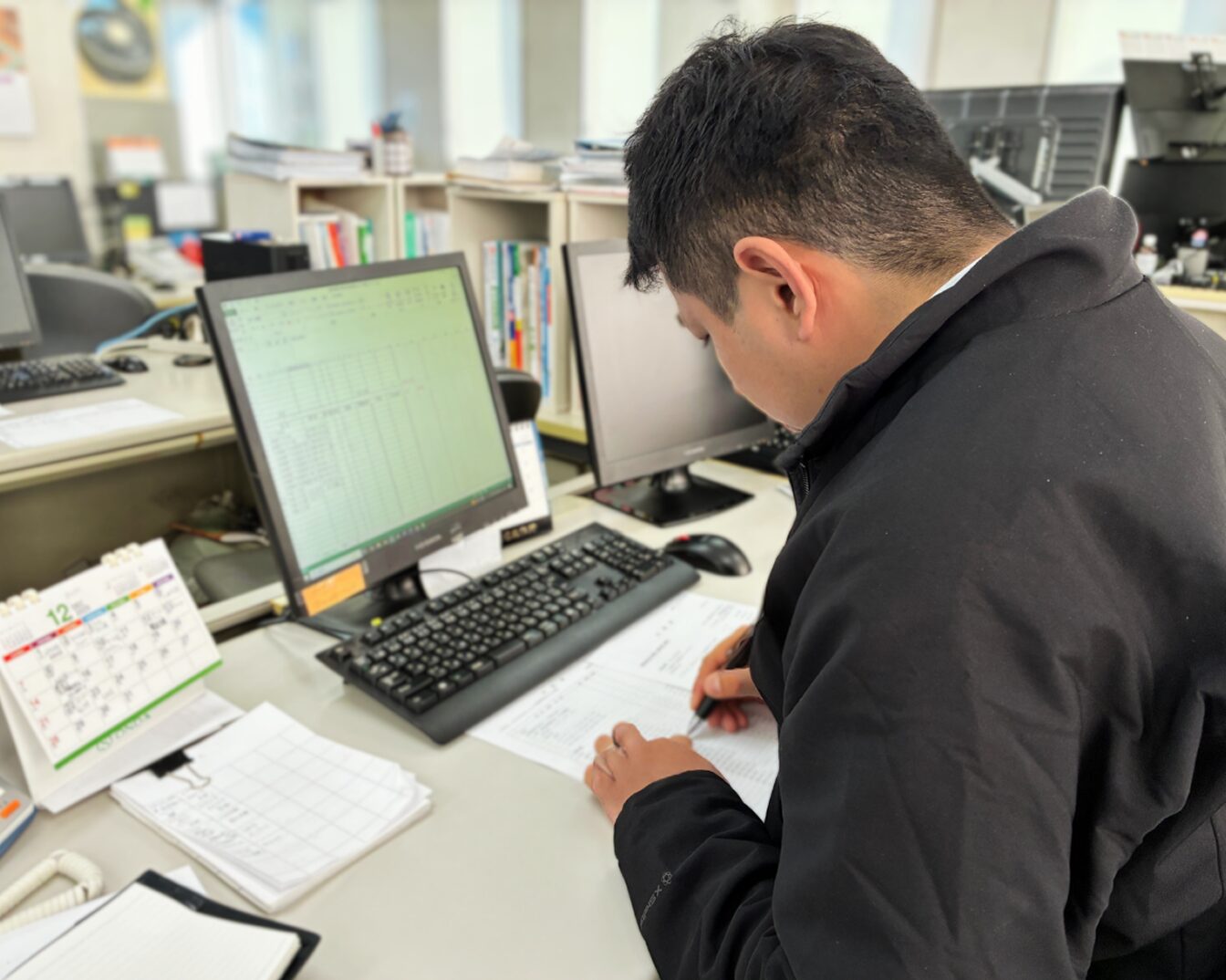 見積書作成会社に戻って、問い合わせ対応や見積書作成。集中してコツコツ進めます。